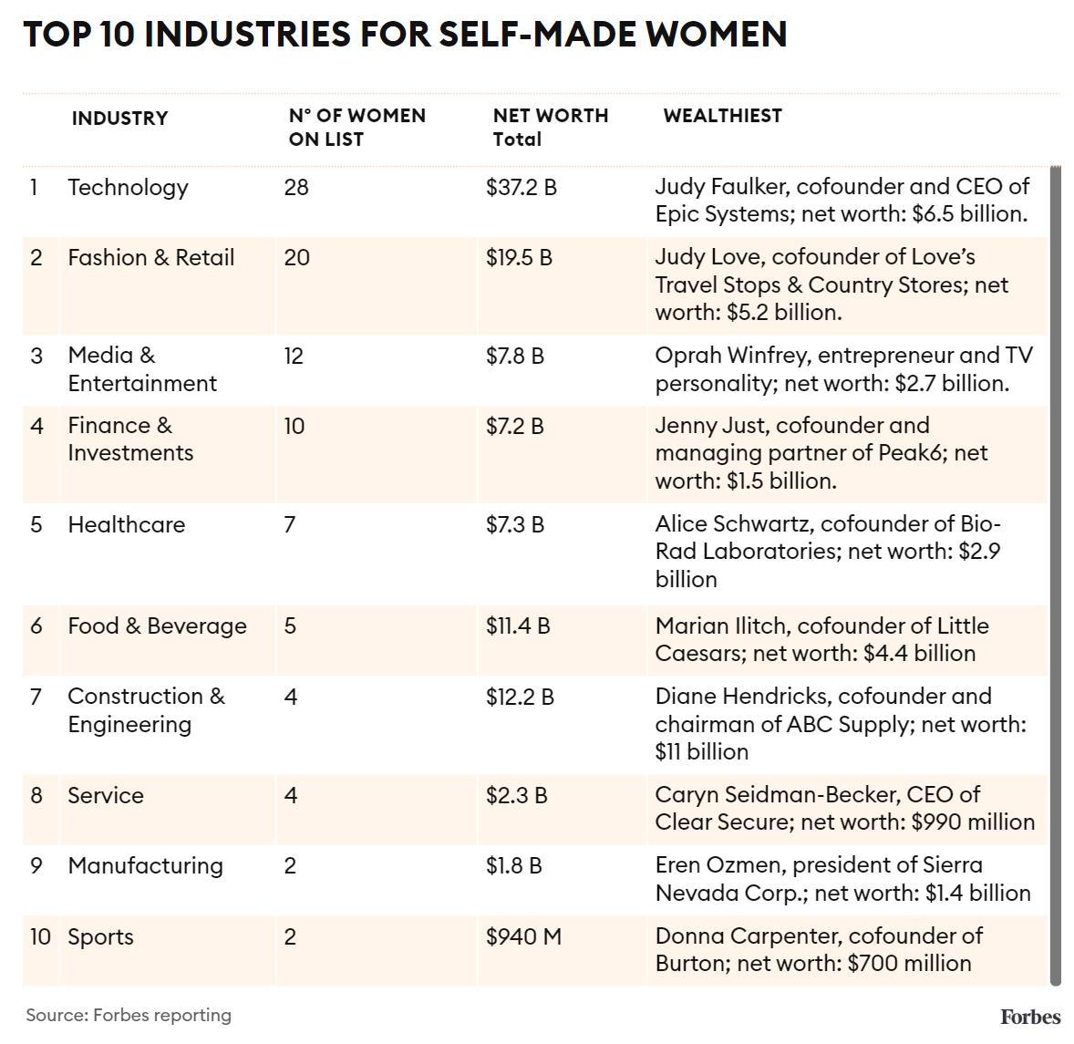 Trong số 100 nữ doanh nhân tự thân giàu nhất nước Mỹ năm 2021, có tới 28 người đang hoạt động trong ngành nghề này.