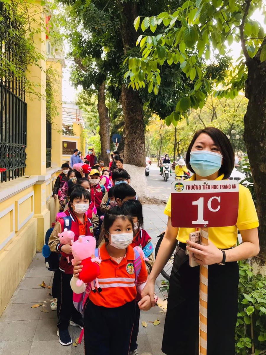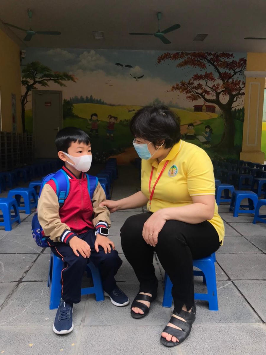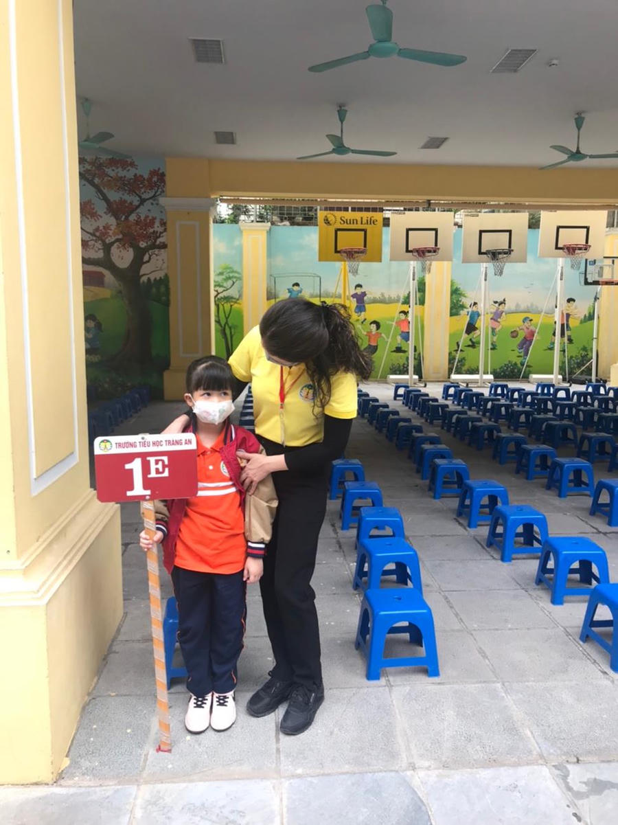 Ngày đầu con đến trường, các bậc phụ huynh lo lắng, mừng vui lẫn lộn. Chị Nguyễn Thanh Thảo, phụ huynh cháu Trương Công Phúc lớp 1B có chia sẻ với cô giáo chủ nhiệm: “ Gia đình con, cả nhà ai cũng vô cùng hồi hộp!”. Chị Nguyễn Lan Hương, phụ huynh cháu Nguyễn Gia An lớp 1A chia sẻ: “ Con đã quen cô, quen bạn qua các buổi học trực tuyến nhưng gia đình vẫn rất hồi hộp. Các con lớp 1 bé bỏng nên mẹ con lo lắng khi ngày đầu con đến lớp. Nhưng cô giáo của con đã có những chia sẻ với phụ huynh qua buổi họp phụ huynh trước ngày con đến trường. Cô giáo rất chu đáo nên mẹ cháu tin rằng con sẽ nhanh chóng quen trường, quen lớp với nhiều niềm vui.”