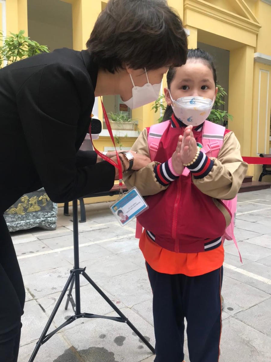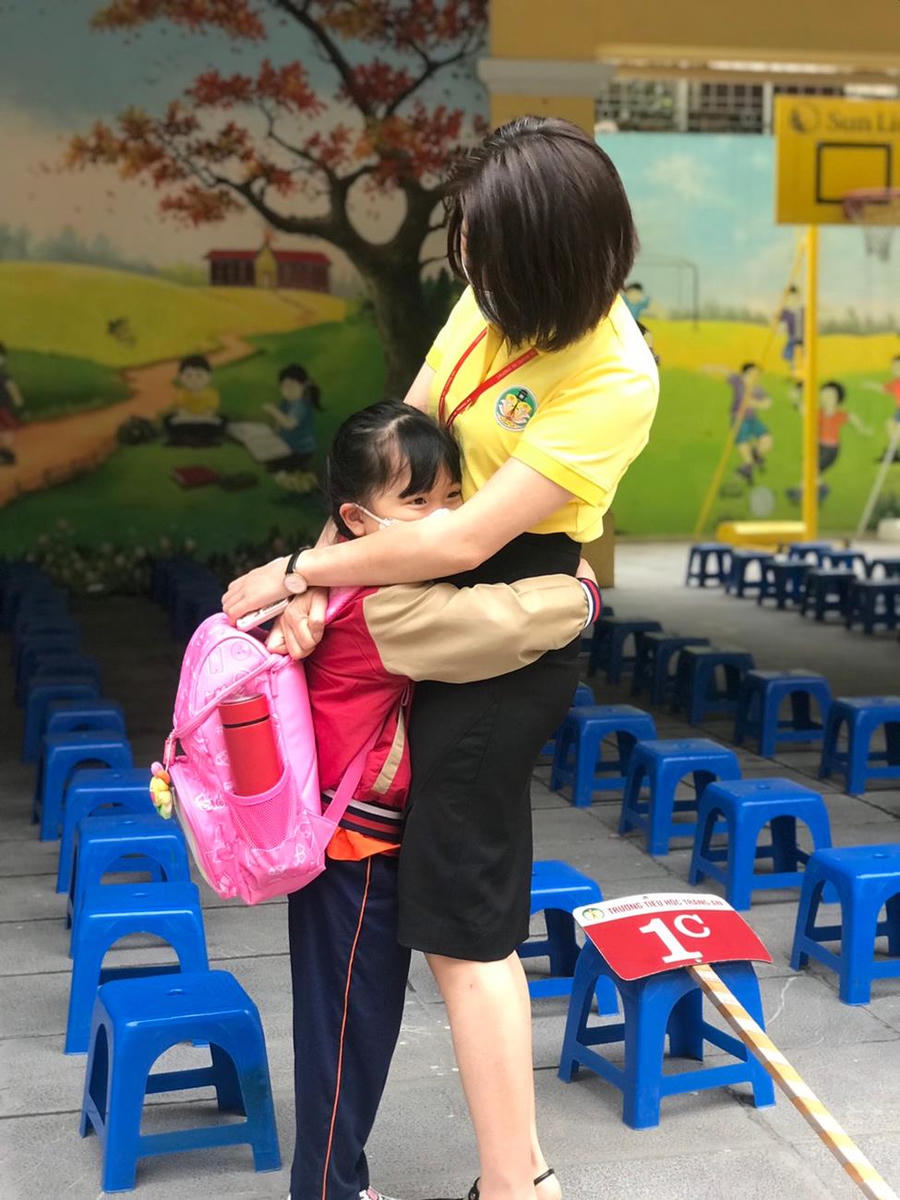 Con Nguyễn Vũ Minh Anh lớp 1C đã ôm chầm cô giáo và thốt lên khi gặp cô: “ Cô ơi, con đây, con mong gặp cô, con yêu cô!”