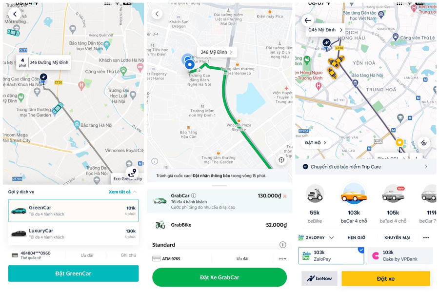 Thử so sánh ở cùng một quãng đường từ Mỹ Đình đến khu đô thị Eco Green City (Thanh Xuân, HN), mức giá GreenCar đưa ra chỉ là 101.000 đồng, trong khi mức giá của GrabCar là 130.000 đồng. Với ứng dụng Be, mức giá hiển thị cũng chỉ ở 103.000 đồng.