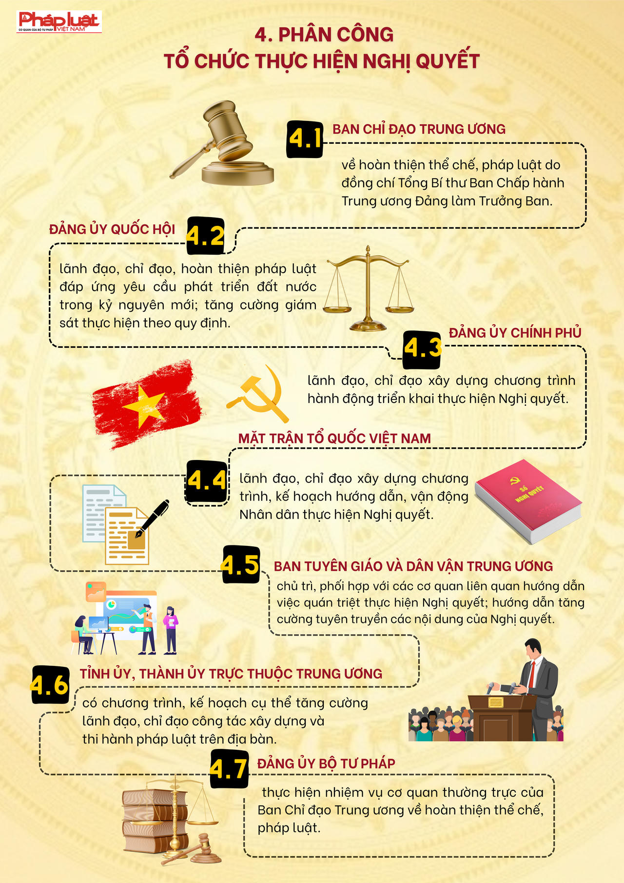 "Trong bối cảnh thế giới đang có những thay đổi mang tính thời đại, để đất nước vững bước vào kỷ nguyên mới - kỷ nguyên vươn mình phát triển bứt phá, giàu mạnh, hùng cường dưới sự lãnh đạo của Đảng; cùng với việc thực hiện cuộc cách mạng về tinh gọn tổ chức bộ máy, phấn đấu tăng trưởng kinh tế "hai con số", công tác xây dựng và thi hành pháp luật phải được đổi mới căn bản, tạo động lực mạnh mẽ cho sự phát triển nhanh và bền vững của đất nước"...