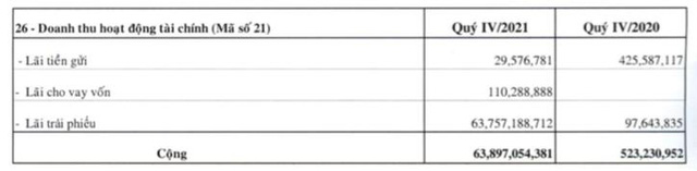 Đáng chú ý hoạt động tài chính mang về doanh thu gần 64 tỷ đồng trong đó chủ yếu đến từ lãi trái phiếu, tăng mạnh so với con số nửa tỷ của năm ngoái.