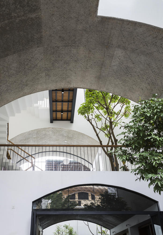 Nhóm kiến trúc sư đã sử dụng thiết kế dạng vòm để vừa khắc phục các điểm yếu của nhà ống đô thị vừa tạo không gian mở thoáng mát và rộng rãi. Đây vừa là hệ khung kết cấu vừa đóng vai trò là không gian ngoài trời cho ngôi nhà.