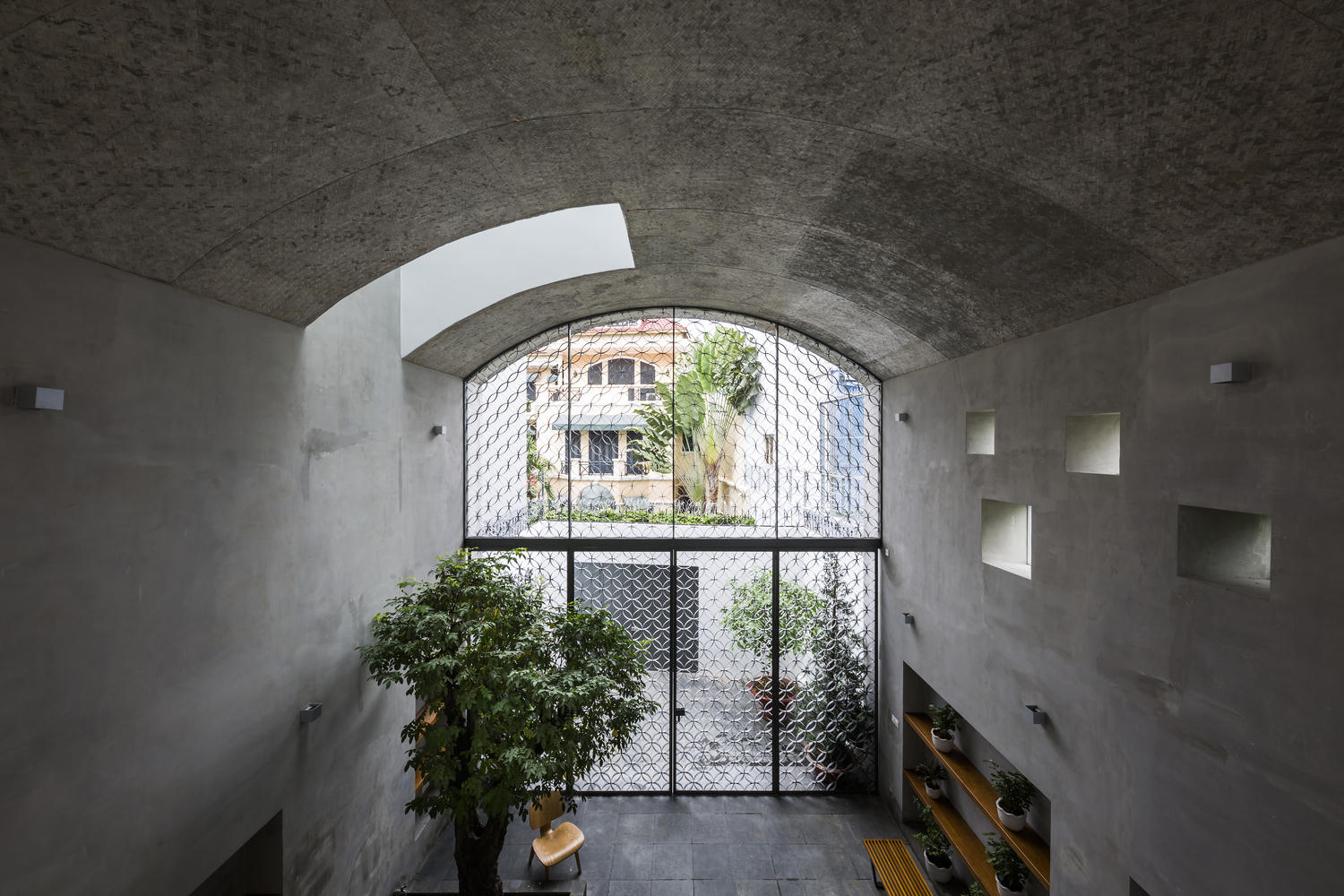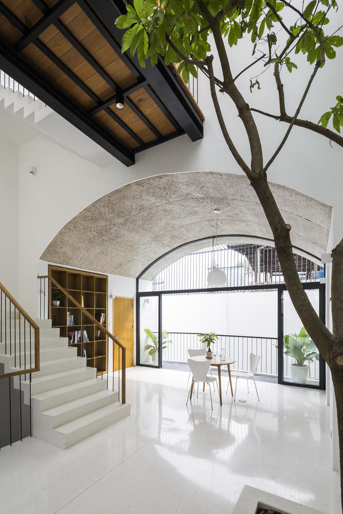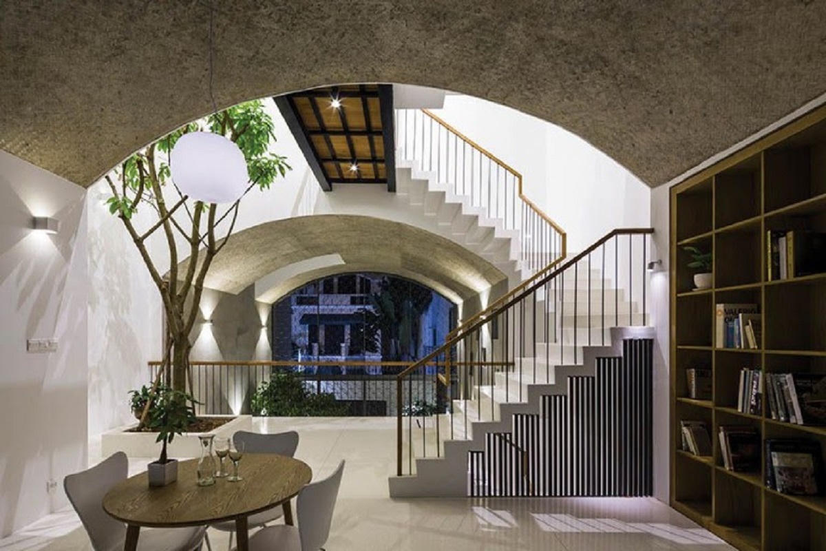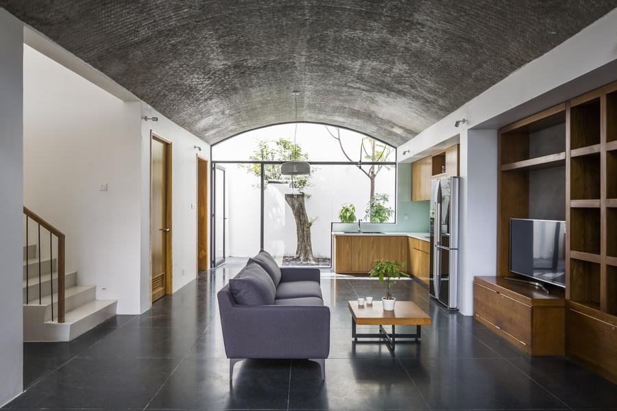 Thiết kế dạng vòm đã giúp căn nhà khắc phục các điểm yếu của nhà ống đô thị, đồng thời tạo không gian mở thoáng mát và rộng rãi cho gia chủ.