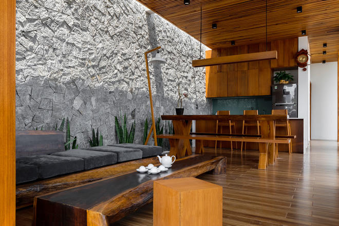 Với diện tích không quá lớn nhưng thiết kế của ngôi nhà đem đến cho gia chủ cảm giác như được hòa mình cùng thiên nhiên.