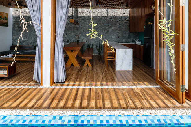 Khoảng trống được đặt ở vị trí trung tâm của ngôi nhà, đóng vai trò như một điểm cân bằng thiên nhiên.