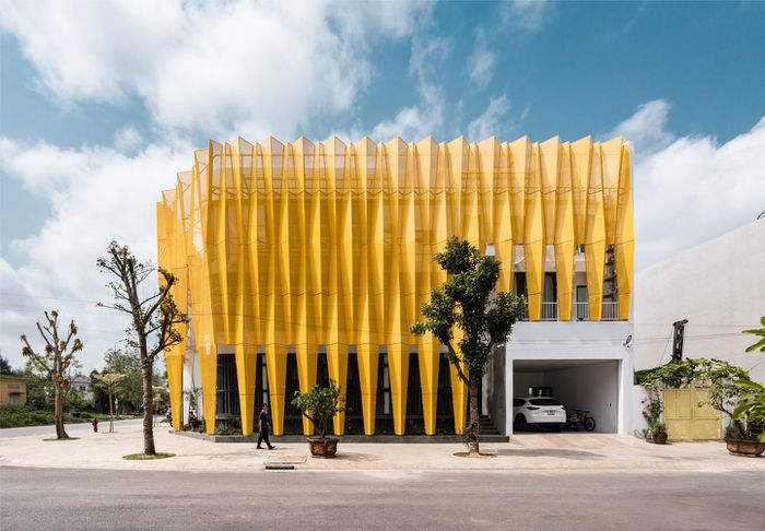 Ngôi nhà phủ "tấm áo" màu vàng, thiết kế nếp gấp sáng rực góc đường Thanh Hóa