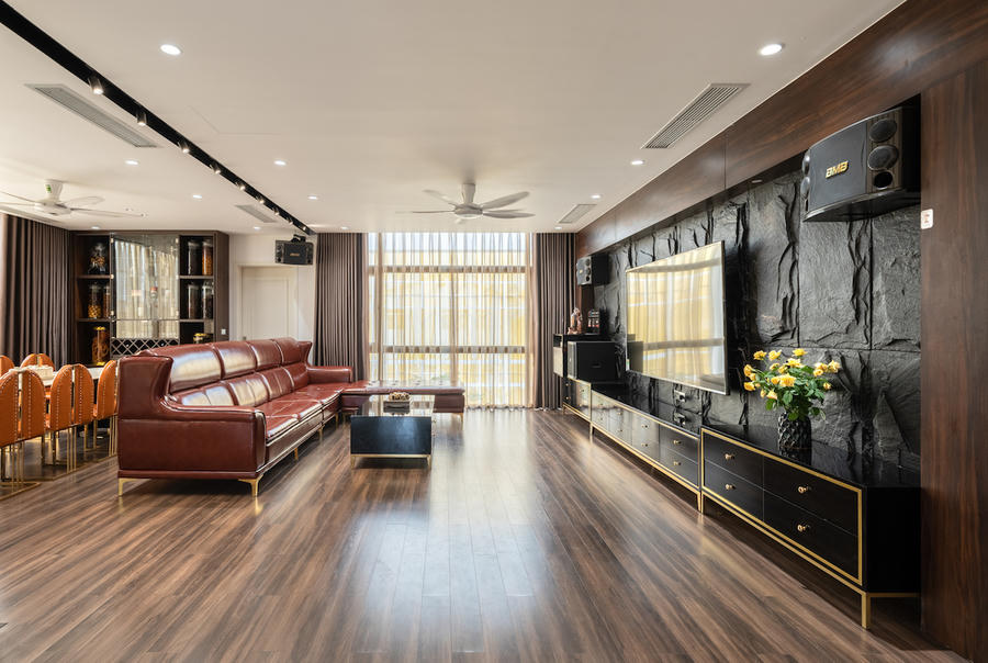 Với mặt tiền rộng, giới kiến trúc sư đã bố trí phân chia mặt bằng theo phương ngang và phương dọc nhằm đảm bảo đồng thời hai chức năng kinh doanh và sinh hoạt gia đình.
