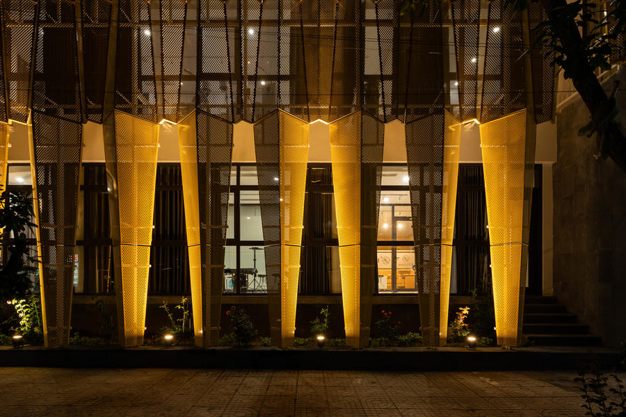 Phần "vỏ áo" vừa rực rỡ kích thích trí tò mò người đi qua, vừa mở ra một không gian đầy độc đáo ẩn chứa bên trong công trình.