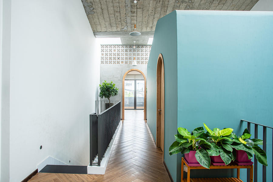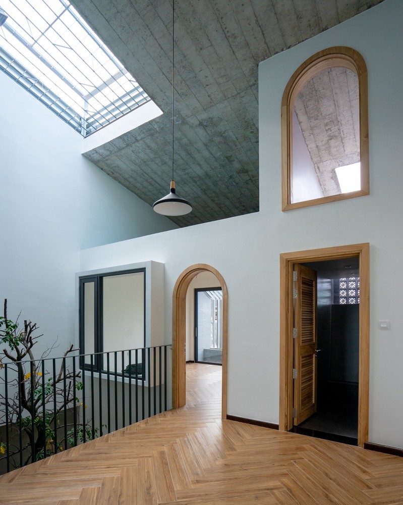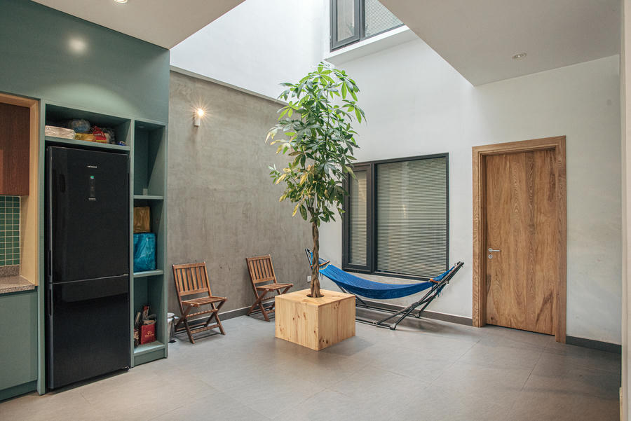Gia chủ đặt sự tiện nghi, an lành của môi trường sống và các thành viên trong gia đình lên hàng đầu. Nhóm thiết kế đã đưa ra các giải pháp xử lý nhiệt và tận dụng giếng trời để đem lại sự tiện nghi, tận dụng tối đa công năng.