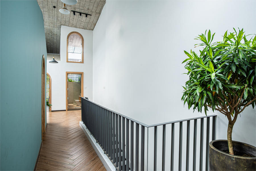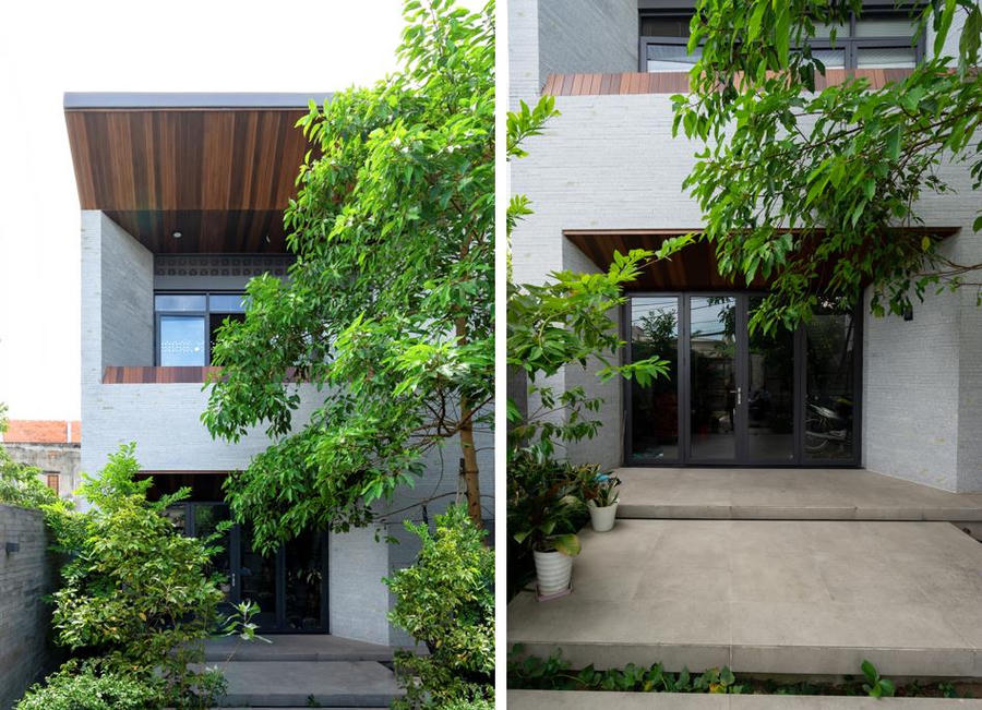 Các mảng cây xanh được bố trí ở sân trước và sân sau như một hệ thống lọc nhiều lớp giúp giảm khói bụi độc hại từ bên ngoài.