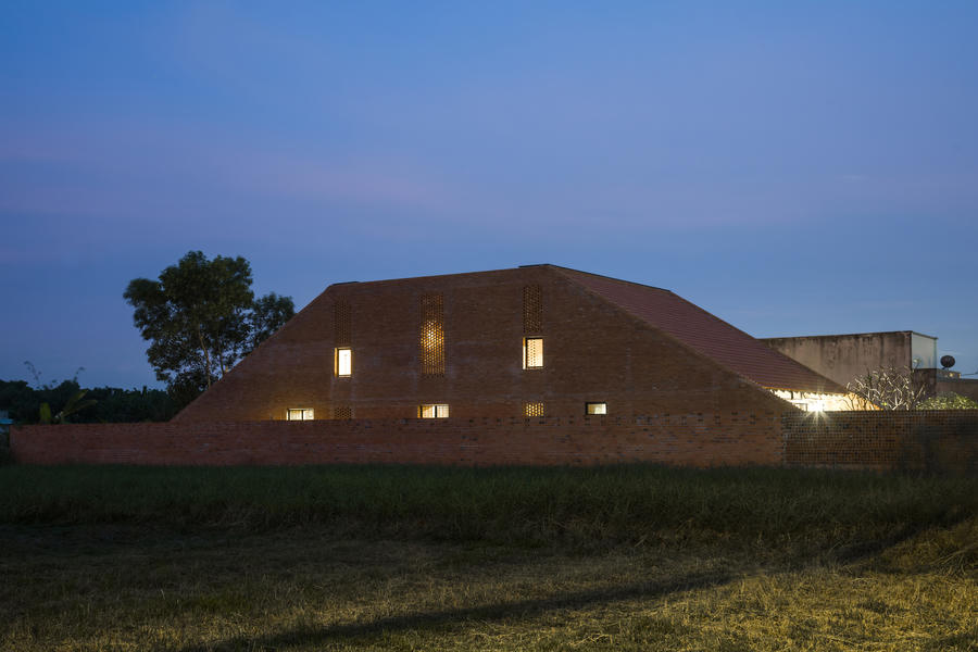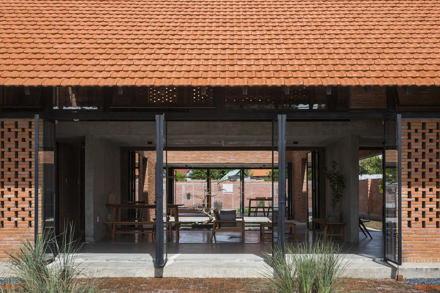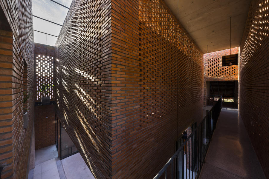 Ngôi nhà có những viên gạch được sắp xếp có chủ đích, tạo khoảng trống cho không khí xuyên qua và lấy sáng. Đó là lý do nó có thể "tự thở" trong tiết trời nhiệt đới nắng nóng của Long An.