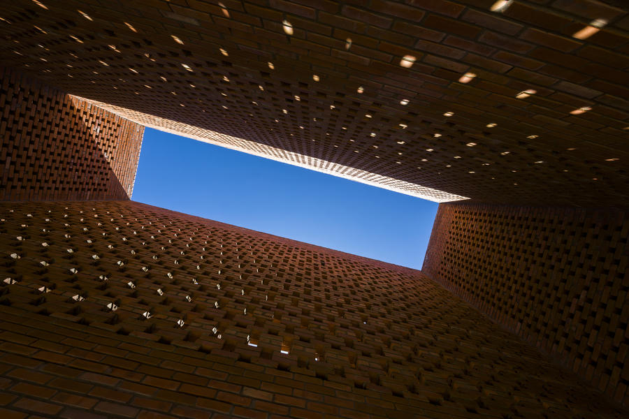 Những viên gạch thô được sắp xếp có chủ đích, tạo lỗ hổng để đón gió và nắng cho ngôi nhà, giúp điều hòa không khí.