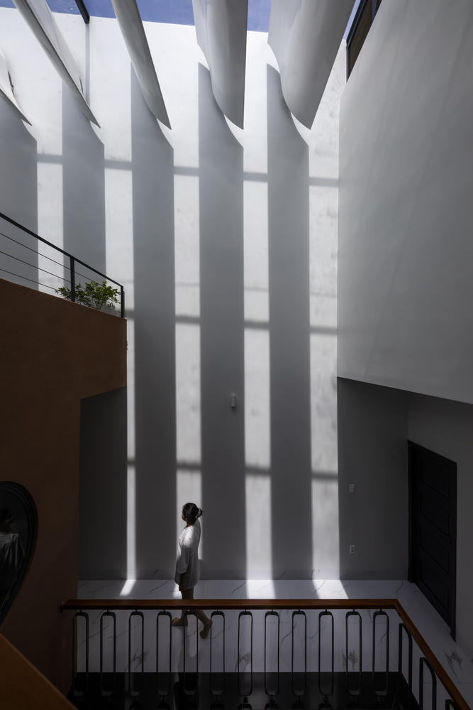 Dự án Hue House mang kiến trúc điển hình của nhà ống tại các thành phố nhưng cũng thiếu phần mới lạ với hệ thống mái lam đón ánh sáng tự nhiên cho cả ngôi nhà.