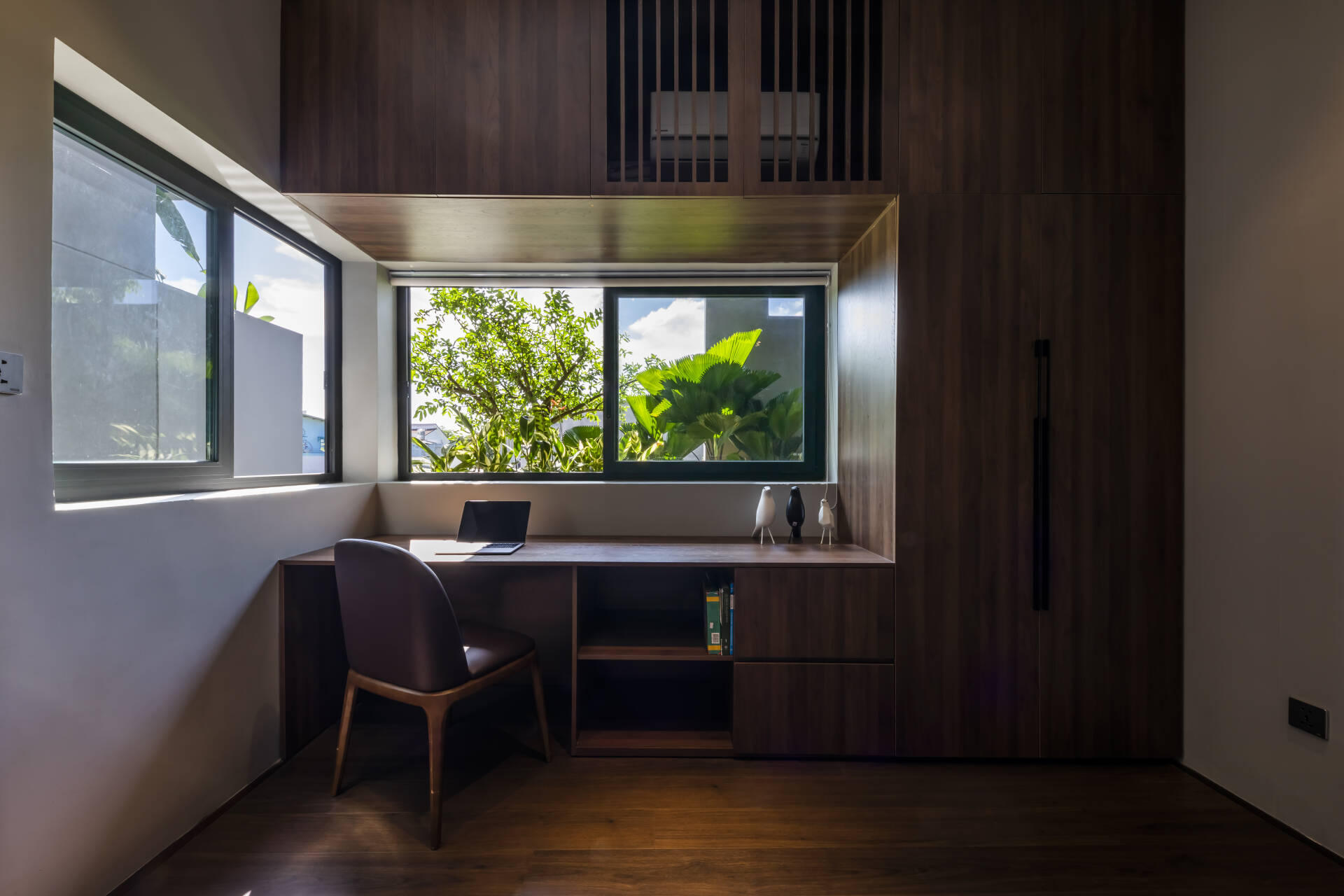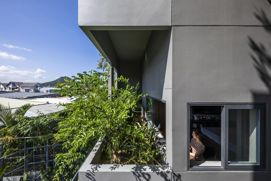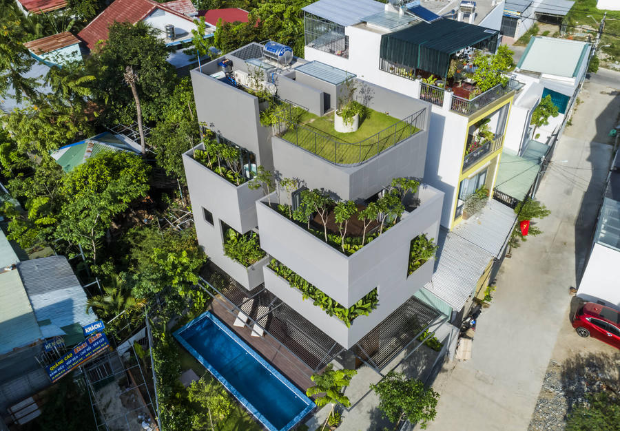 Với cách bố trí cây cối xen kẽ khắp không gian nhà cùng thảm cỏ xanh mướt trên tầng thượng, Bi House đã trở thành một điểm nhấn xanh giữa hàng loạt ngôi nhà kín cổng cao tường của khu dân cư đông đúc.