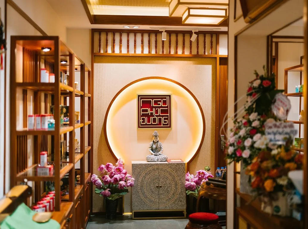 Ngũ Phúc Đường được thiết kế với không gian ấm áp, gần gũi, thân thiện. Những nhân viên tư vấn của Ngũ Phúc Đường ân cần, tỉ mỉ. Tất cả những điều này sẽ giúp cho khách hàng cảm thấy nhẹ nhàng hơn, vui vẻ hơn, gần gũi hơn để chia sẻ, lắng nghe. Ngũ Phúc Đường tin rằng một yếu tố tâm lý tốt, một môi trường tốt cũng sẽ giúp cho những người sức khỏe kém có thể hồi phục nhanh hơn, hiệu quả hơn. Đó cũng chính là điểm khác biệt nổi bật của Ngũ Phúc Đường đối với các công ty đang kinh doanh các sản phẩm chăm sóc và bảo vệ sức khỏe theo Đông y hiện nay.