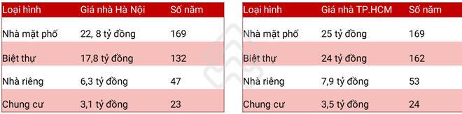 Dữ liệu mới nhất của chuyên trang Batdongsan cho thấy người dân phải mất 169 năm mới mua được nhà mặt phố và khoảng 132 năm để mua được căn biệt thự.