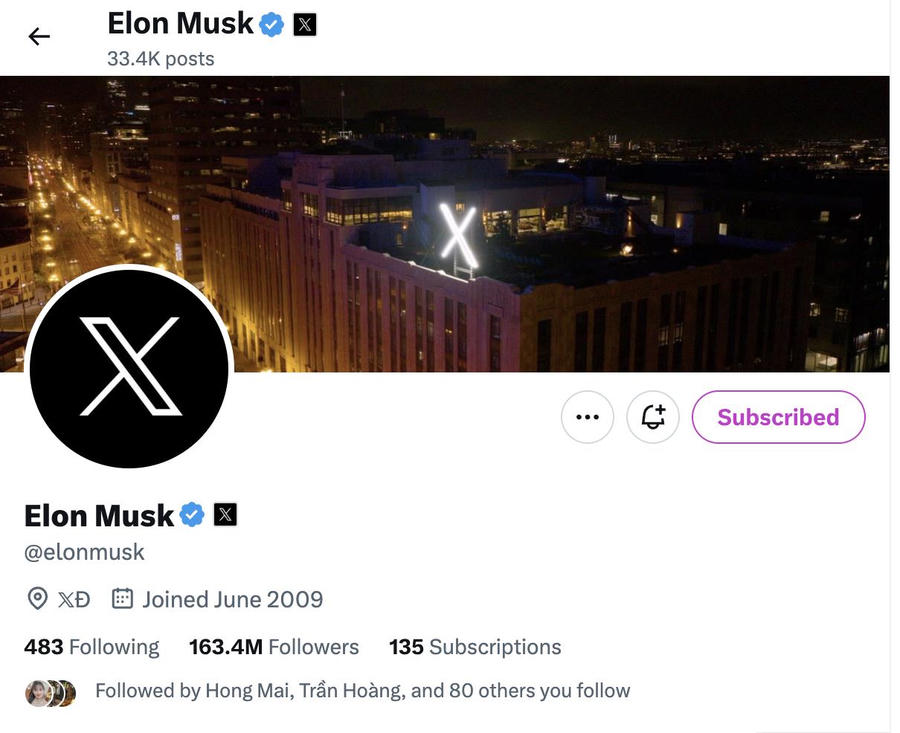 CEO Tesla còn đổi tính năng Super Follow thành Subscription trên tài khoản mạng xã hội X của mình. Nếu trả 4 USD/tháng cho tính năng này, người dùng sẽ được cấp huy hiệu đặc biệt với nhận diện màu tím khá nổi bật, được tiếp cận các nội dung độc quyền mà người dùng khác không đọc được - bao gồm dạng văn bản có số lượng chữ nhiều và video thời lượng dài. Đặc biệt, người theo dõi cũng sẽ có cơ hội trò chuyện với tỉ phú Elon Musk.