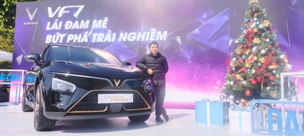 Chiều 23/12, anh Nguyễn Văn Châu (hiện đang sinh sống tại Bắc Ninh) có mặt tại Long Biên, Hà Nội từ sớm để trải nghiệm mẫu xe điện VF 7 trong chương trình lái thử của VinFast.