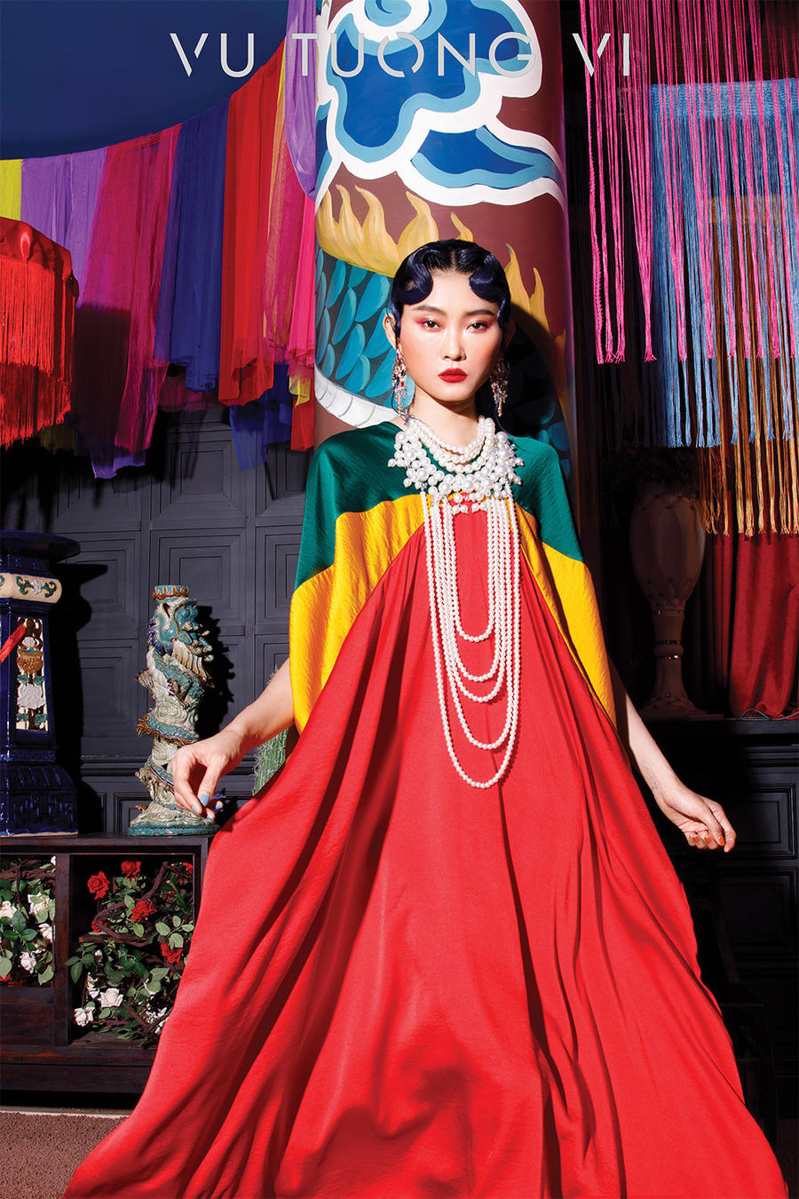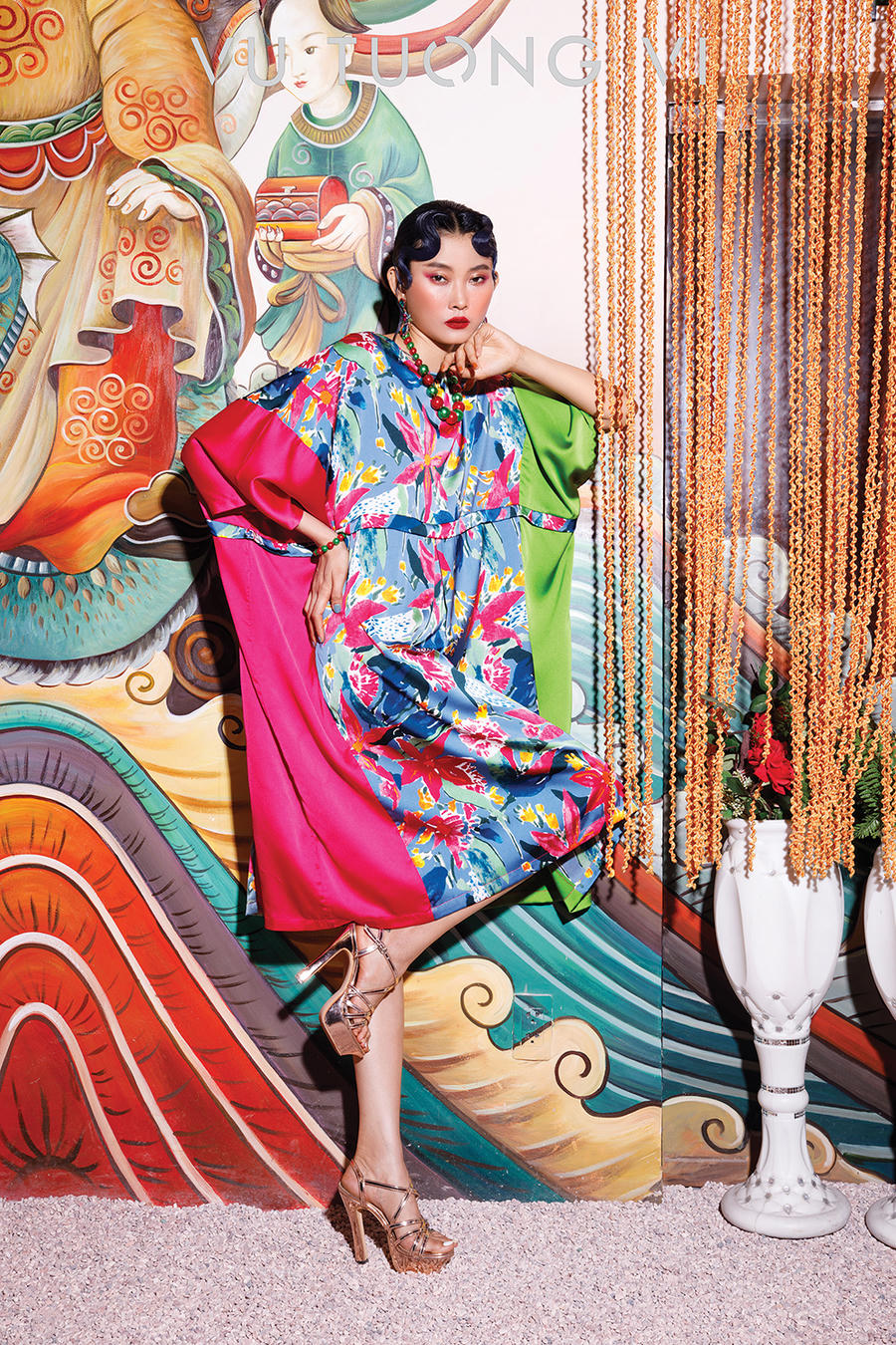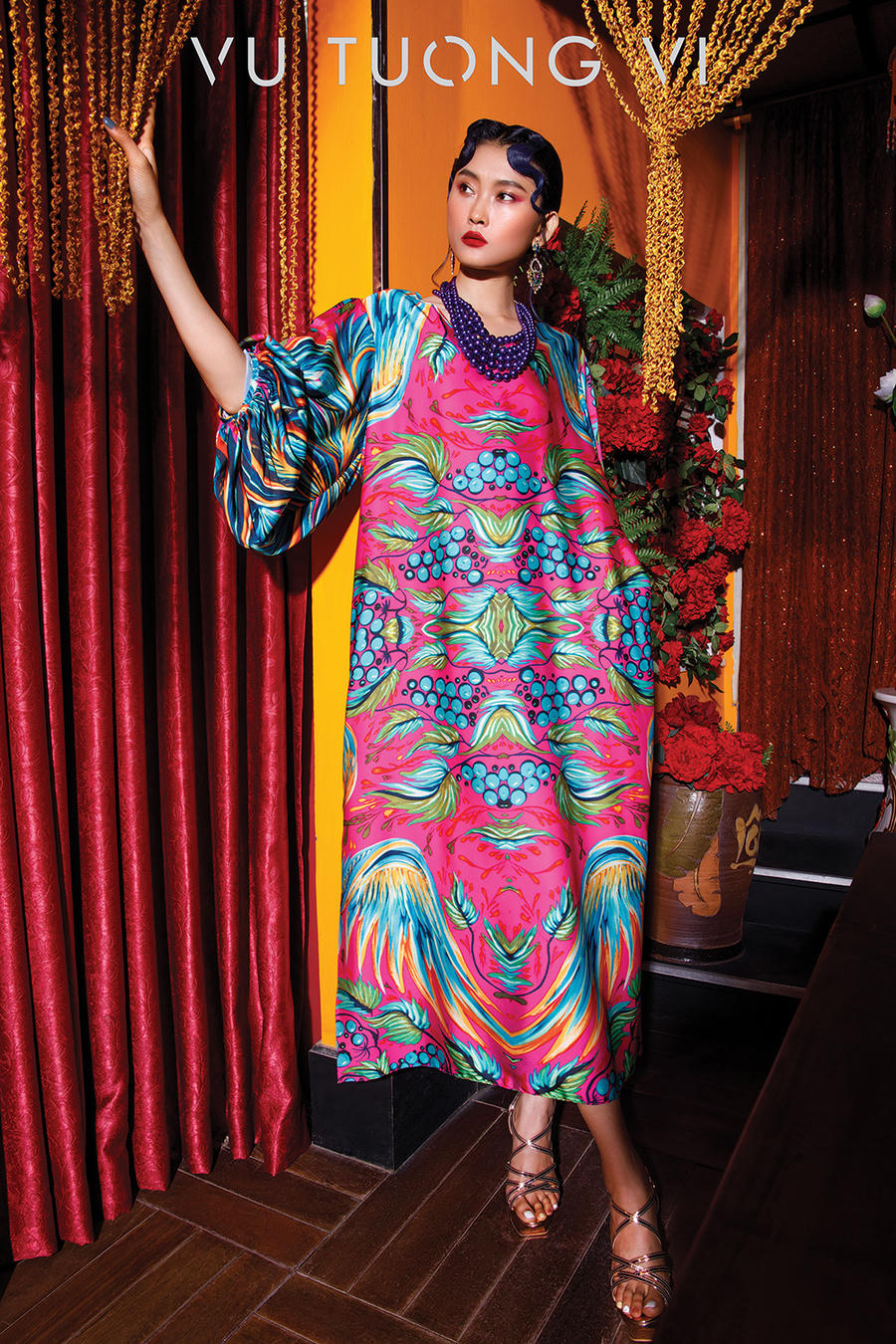 Như một dạng chữ ký ngầm khẳng định cá tính sáng tạo cũng như tầm nhìn của một NTK có năng lực, điểm chung của các thiết kế của Vũ Tường Vi là nhiệt độ màu sắc luôn được thể hiện ở mức cao, đem đến sự ấn tượng, rung cảm và mãn nhãn phần nhìn nhưng không vì thế mà kém đi khả năng truyền tải thông điệp ẩn giấu trong các họa tiết hoa sen, chim công, phượng hoàng và đặc biệt là dấu ấn văn hóa tín ngưỡng Tứ Phủ hay an lành của đạo Phật. Và đây là điều không phải bất cứ NTK nào cũng dám thử nghiệm và chuyển hóa thành công vào các tác phẩm của mình. Với Vũ Tường Vi, trang phục không chỉ là vẻ trưng diện bề ngoài mà nó còn kể những câu chuyện riêng của người làm nghệ thuật và bộc lộ tầm vóc của người mặc khi có sự đồng cảm nhất định.