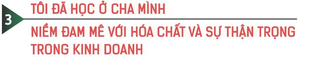 Xung quanh gia đình cuộc sống đều xoay quanh hoá chất, bữa cơm cũng nói chuyện về hoá chất, từ bé nhà bán hoá chất ở tầng 1, tầng 2, còn gia đình tôi ở tầng 3, tầng 4, lúc nào cũng ở cạnh hoá chất. Đến khi đi học ở UK về gia đình mới mua nhà tách khỏi công ty. Đó là cuộc sống của mình rồi, không bao giờ thấy gò bó khi làm công việc này.