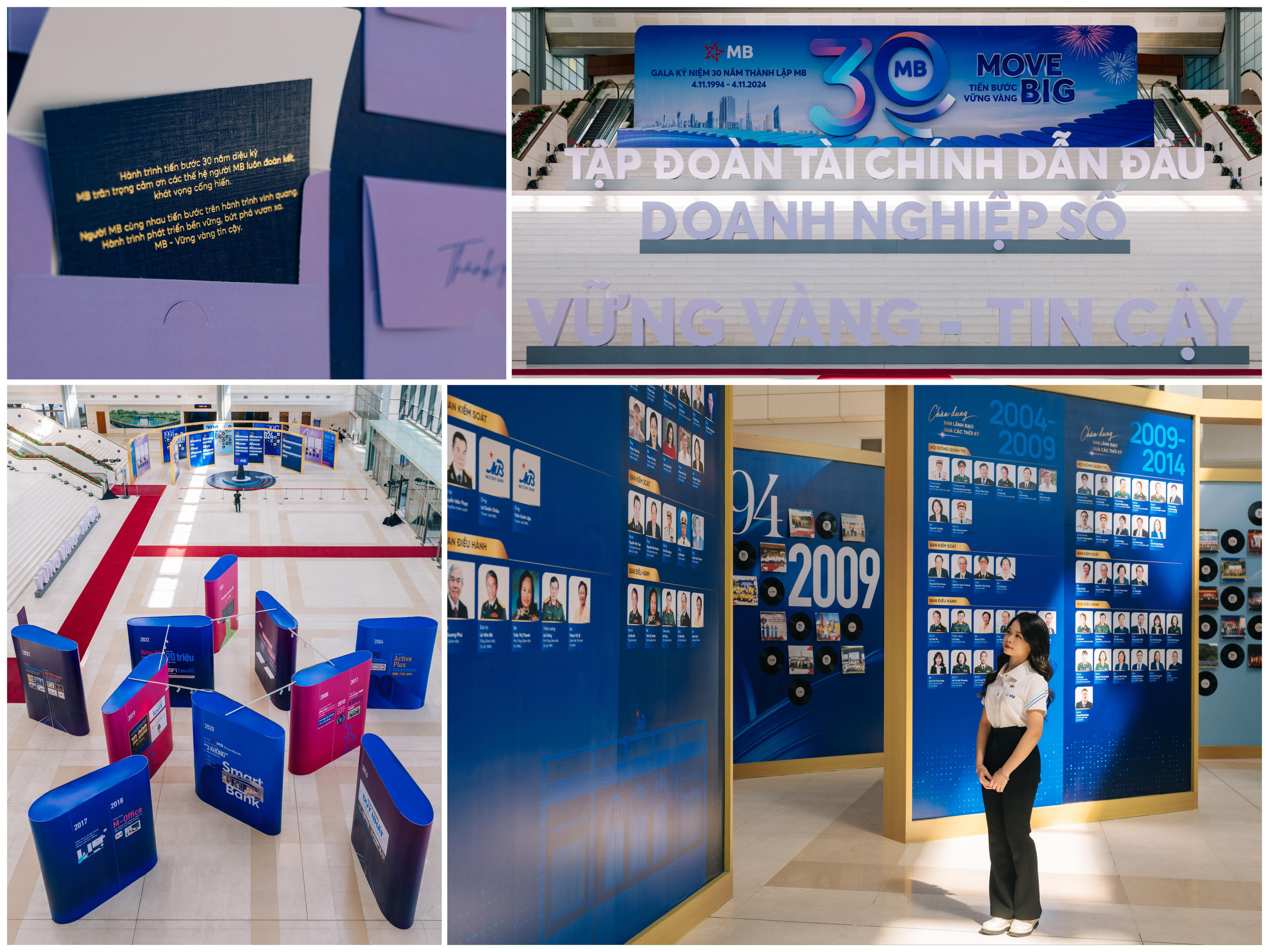 Bên cạnh đó, khu vực triển lãm là một trong những địa điểm được người MB “check-in” nhiều nhất trong sự kiện. Với nhiều khu vực triển lãm được thiết kế và trang trí công phu như Quảng trường MB Icon, Triển lãm MB Wonder, Nhà hát MB Star, Đại lộ MB Future…, buổi triển lãm đã tái hiện hành trình 30 năm diệu kì của MB, từ câu chuyện của những ngày đầu thành lập, những nét văn hóa đặc sắc riêng biệt đến khát vọng chuyển đổi số và tầm nhìn phát triển bền vững của MB trong tương lai.
