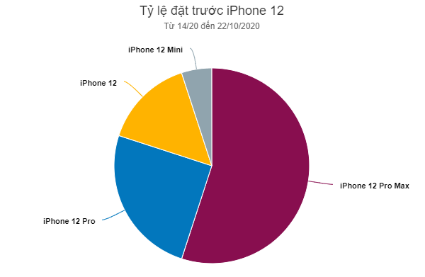 Ở thị trường chính hãng, iPhone 12 mini cũng không được ưa chuộng. Thống kê tại bốn hệ thống bán lẻ lớn trong nước, lượng khách hàng quan tâm đến iPhone 12 khoảng 30 nghìn người, trong đó, dưới 10% hỏi về iPhone 12 mini. Ngược lại, iPhone 12 Pro Max - giá trên 30 triệu đồng - lại được quan tâm nhiều nhất, ở mức trên 50% tại các đại lý.