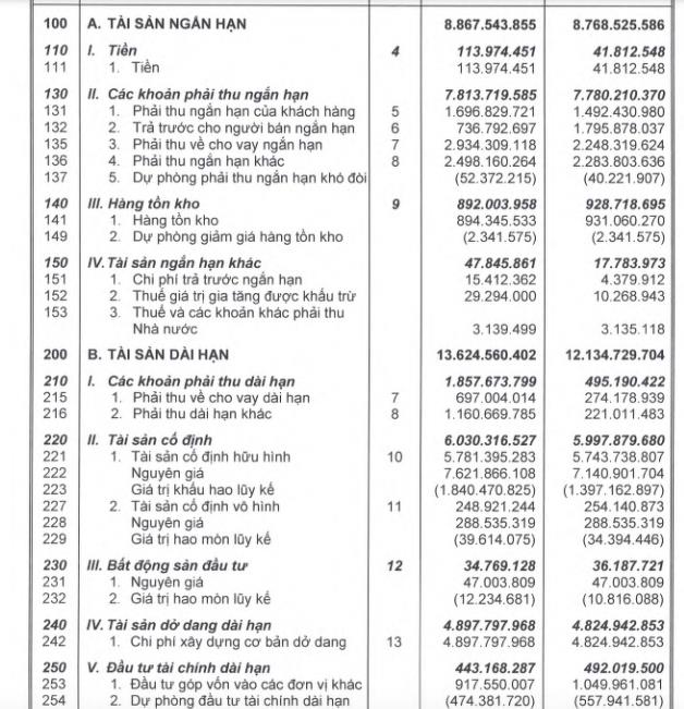Đáng chú ý, công ty có khoản phải thu về cho vay ngắn hạn 2.934 tỷ đồng và 697 tỷ đồng cho vay dài hạn. Ngoài ra, công ty cũng ghi nhận khoản gần 4.900 tỷ đồng chi phí xây dựng cơ bản dở dang, chủ yếu chi phí phát triển vườn cây ăn quả và một phần ở dự án chăn nuôi, nhà xưởng...