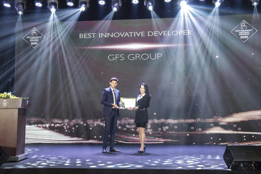 Đặc biệt, nhờ có nhiều đổi mới sáng tạo, ứng dụng khoa học công nghệ trong hoạt động sản xuất, kinh doanh và hướng tới phát triển bền vững, tháng 11/2021, Tập đoàn GFS đã được trao tặng danh hiệu “Nhà phát triển Bất động sản đổi mới sáng tạo tốt nhất Việt Nam 2021” (Best Innovative Developer Vietnam 2021), bởi Ban Tổ chức Giải thưởng Dot Property Vietnam Awards 2021…