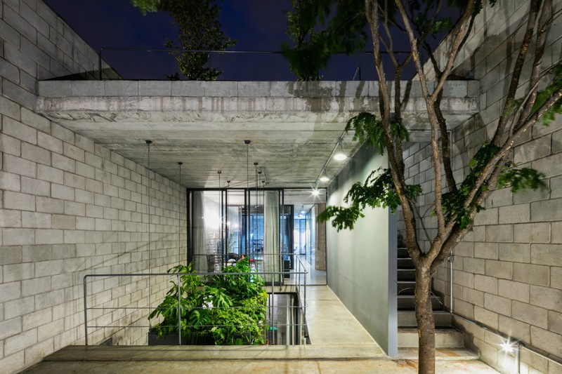 Màu xanh của cây kéo dài từ tầng trệt lên đến tầng mái.