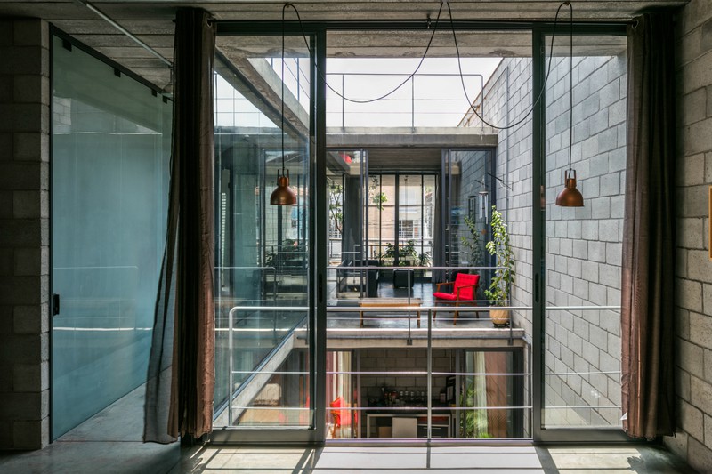 Tất cả các khối nhà được thu hẹp lại, nhường chỗ cho giếng trời đặt ở trung tâm.