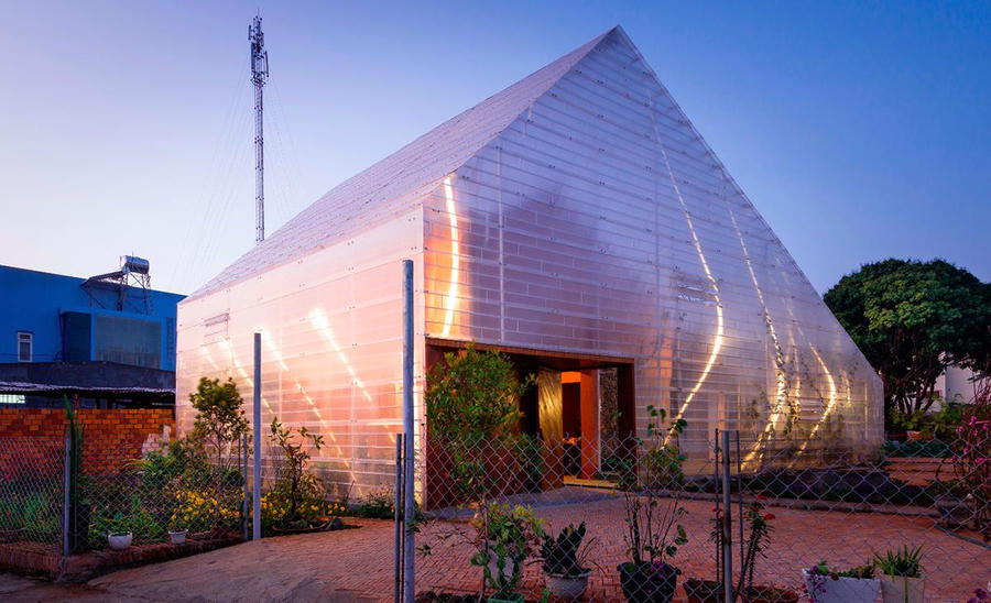Nhà cũ bỏ hoang 20 năm được bọc hoàn toàn bằng tấm nhựa