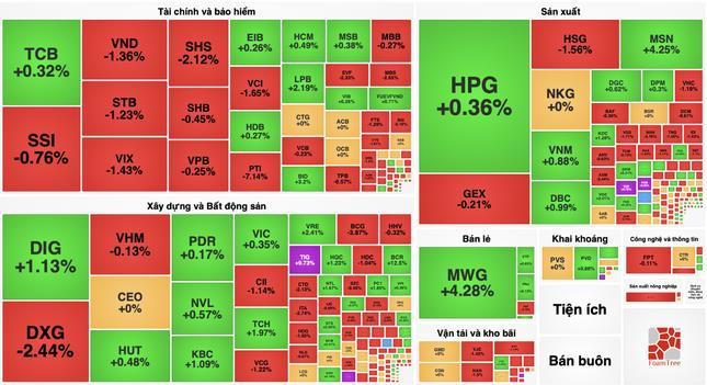 Bất chấp thị trường phân hoá, khối ngoại bán ròng mạnh, VN-Index tiếp tục có phiên đóng cửa trong sắc xanh. Thanh khoản giảm mạnh, dòng tiền lướt sóng không còn sôi động như 2 phiên vừa qua. Lợi nhuận từ việc lướt sóng penny nhanh chóng được hiện thực hoá, loạt cổ phiếu chuyển sắc đỏ. Các penny nhóm bất động sản như DRH, ITA, SCR, DXS, CRE, QCG, ASM… giảm giá.