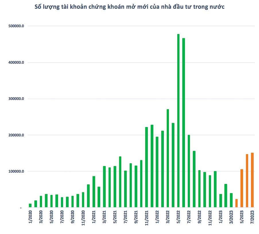 Nhà đầu tư trong nước mở mới hơn 150.000 tài khoản trong tháng 7, cao nhất trong vòng 11 tháng