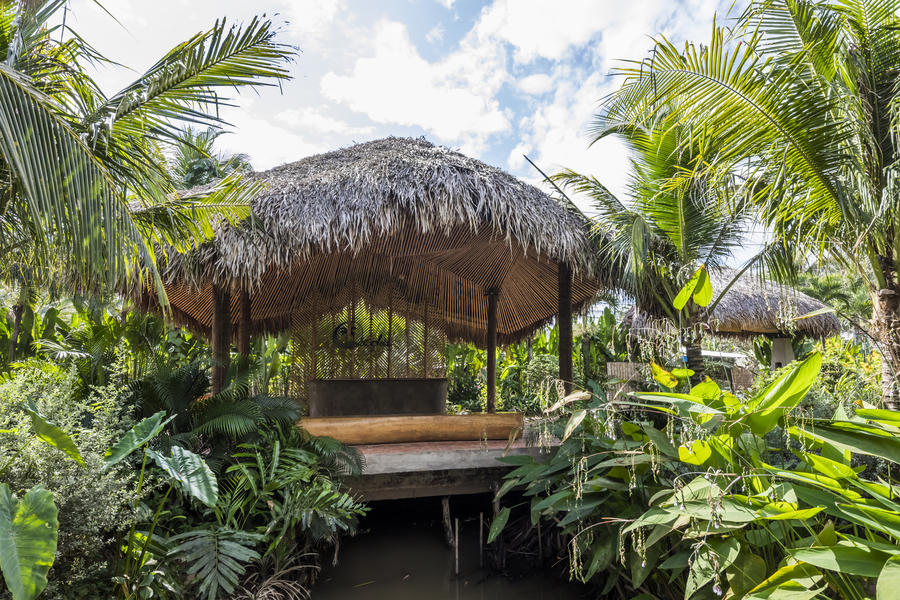 Nằm trên vùng đất của xứ dừa, một nhà hàng chính và 8 căn lều riêng biệt âm thầm hiện ra với hình dáng làm từ vật liệu hữu cơ. Chuỗi quần thể trở nên hấp dẫn hơn bởi sự gắn kết của gió và nước.