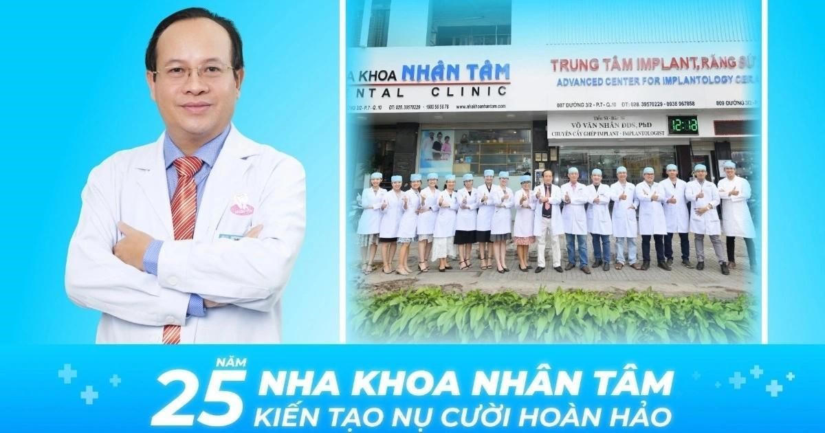 Tiến sĩ, Bác sĩ Võ Văn Nhân - Giám đốc Nha khoa Nhân Tâm là Bác sĩ Việt Nam đầu tiên thực hiện thành công các kỹ thuật phức tạp trong Implant nha khoa như: ghép xương 3 chiều, ghép xương khe hở huyệt răng để cấy ghép Implant cho bệnh nhân khe hở môi, khâu vá màng xoang bị thủng lớn, cấy ghép Implant cho bệnh nhân không răng bẩm sinh…