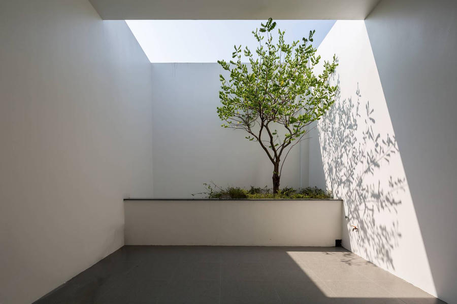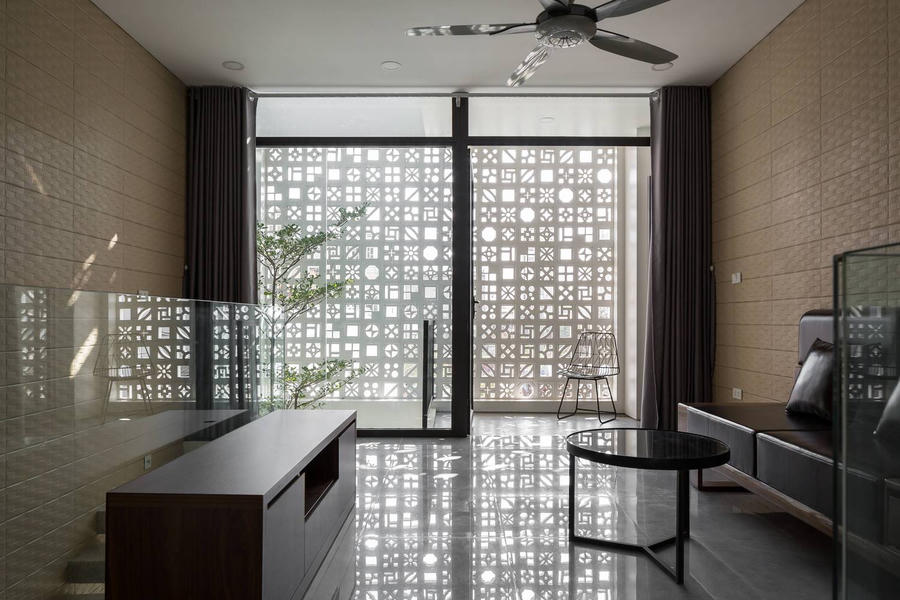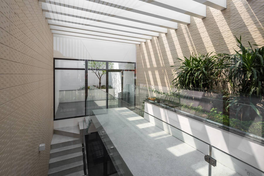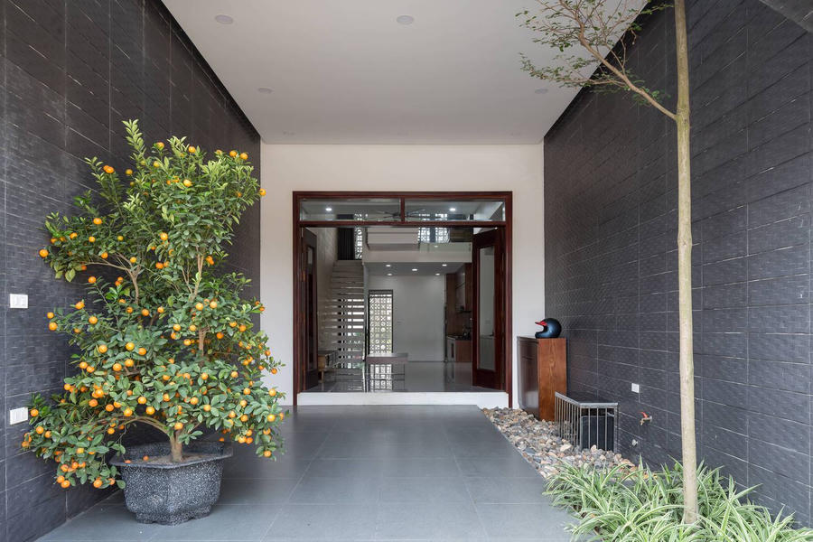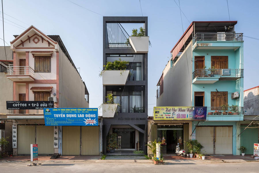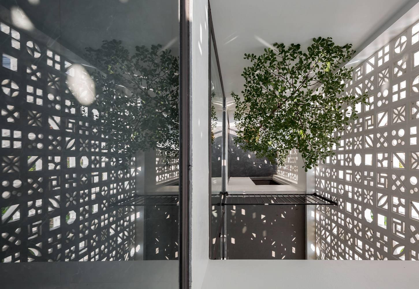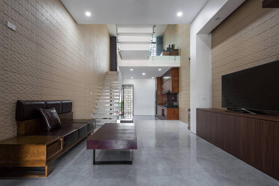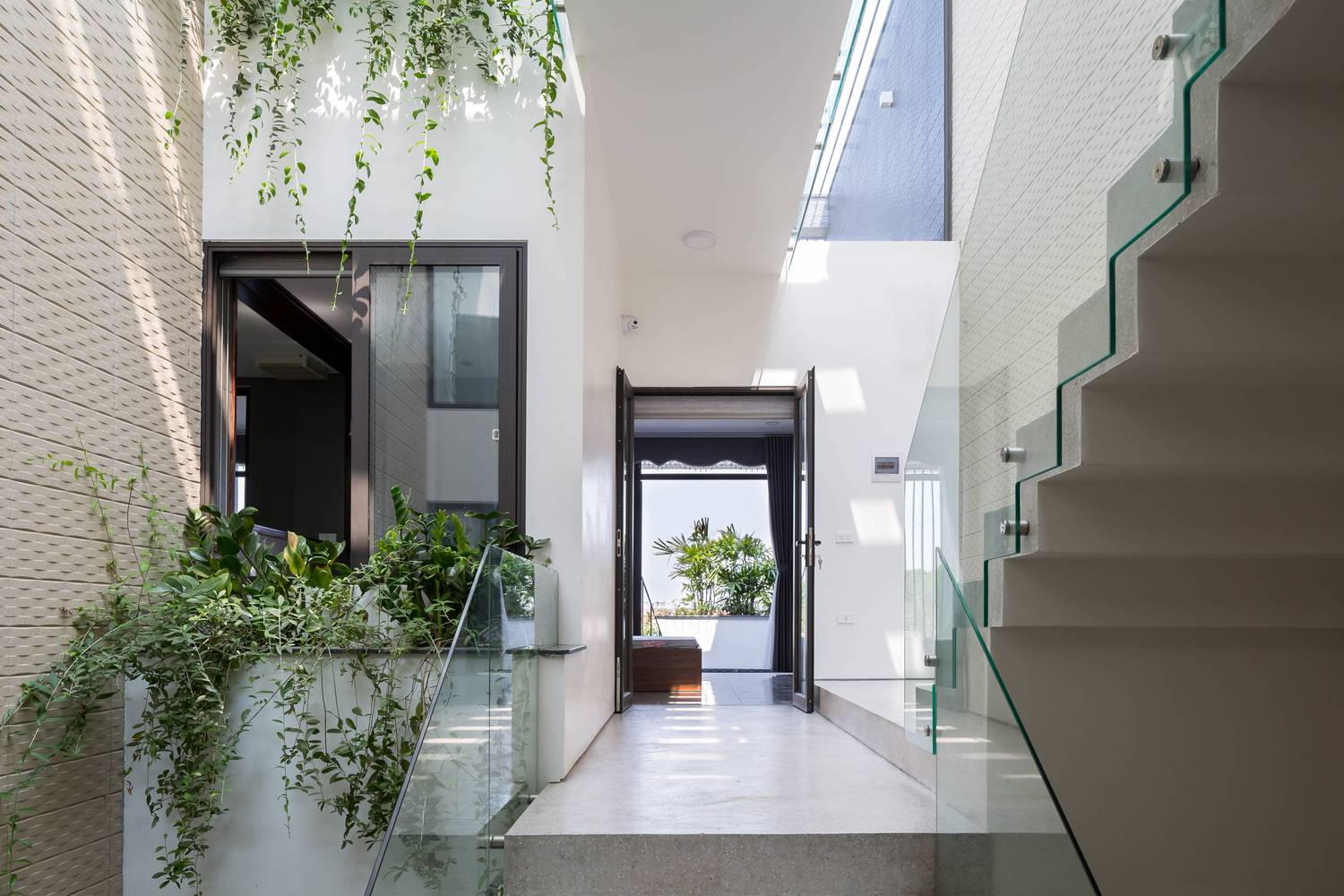Nhà có mặt tiền hẹp 4,5 m nhưng dài 18 m, là mẫu nhà ổng điển hình ở Việt Nam. Các kiến trúc sư đã thiết kế không gian sống có nhiều cây xanh và tăng khoảng trống ngoài trời để thành viên trong gia đình được thoải mái.