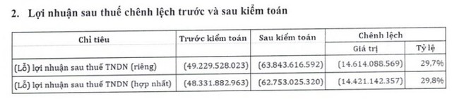 Lãi khác gần 5 tỷ đồng chuyển thành lỗ khác gần 1 tỷ đồng do điều chỉnh giảm thu nhập khác từ hoạt động thanh lý tài sản, đồng thời ghi nhận tăng chi phí khác của dự án đã hoàn thành.
