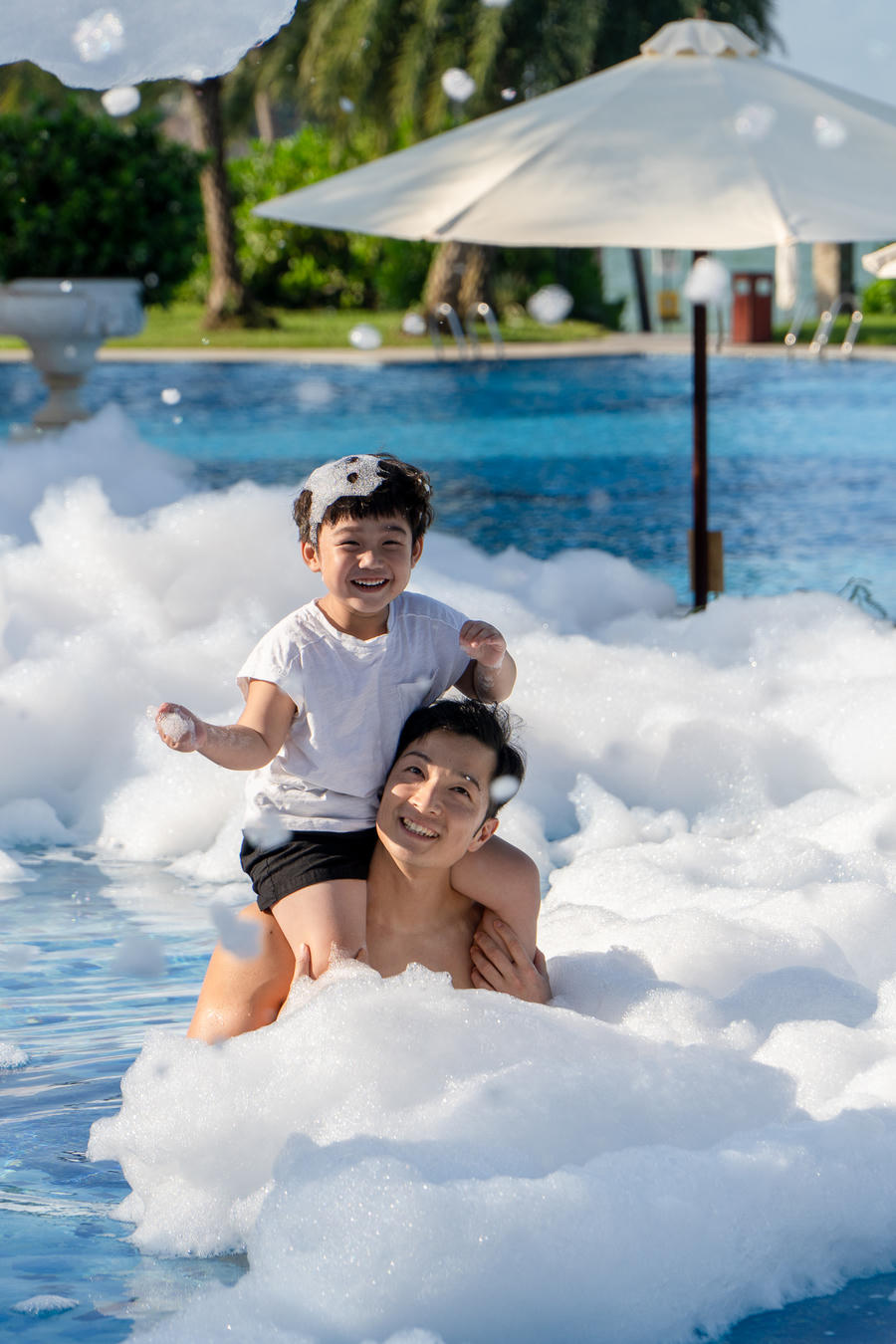 Với những gia đình yêu thích sự năng động, không thiếu những cơ hội để du khách được thỏa sức vui chơi cùng nhau. Từ những trận bóng pickleball sôi động, đến vòng xe đạp đôi băng qua những cung đường xanh ngát của khu nghỉ. Đặc biệt, vào mỗi cuối tuần, các bé sẽ được thỏa thích đắm chìm trong buổi tiệc bọt nước tại hồ bơi trẻ em.