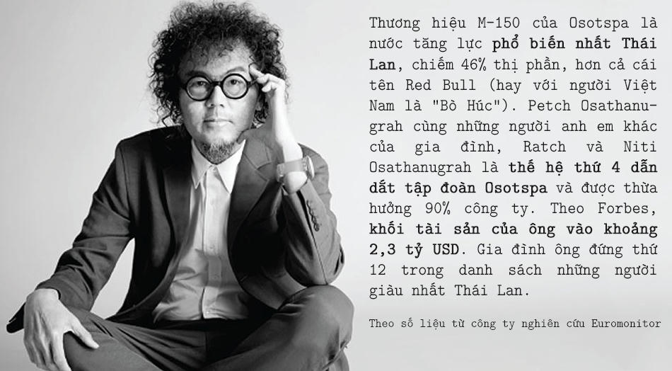 Nói thêm về Osotspa, đây là tập đoàn có lịch sử từ năm 1891. Trải qua nhiều biến cố về chính trị, cái tên Osotspa vẫn liên tục phát triển. Năm 1970, công ty này cho ra đời nước tăng lực M – 150. Sản phẩm này . Năm 1989, M – 150 đạt mức tiêu thụ 100 triệu chai.
