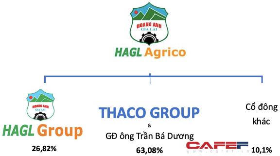Và, bắt đầu từ ngày 8/1/2021, Chủ tịch Thaco - ông Trần Bá Dương – chính thức là Chủ tịch HĐQT HAGL Agrico, cùng nhiều thành viên chủ chốt khác. HAGL Agrico trở thành công ty con của Thagrico (Thadi cũ), trong đó HAGL chỉ còn sở hữu 26,82% vốn, Thaco Group và gia đình ông Dương nắm 63,08% vốn (cổ đông lớn nhất).
