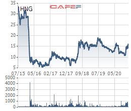 Trên thị trường, cổ phiếu HNG cũng rơi thẳng từ mức 35.000 đồng/cp xuống chỉ còn 5.000 đồng/cp chỉ trong thời gian ngắn, vốn hoá bốc hơi hơn 86%. Đến nay, thị giá Công ty lình xình ở mức 15.000 đồng/cp, tương đương vốn hoá 17.848 tỷ đồng. Trong khi đó, 2 đơn vị sánh vai thời mới niêm yết là HPG đã đạt gần 142.000 tỷ đồng, STB dù trải qua nhiều biến động cũng đang ở mức 32.466 tỷ đồng.