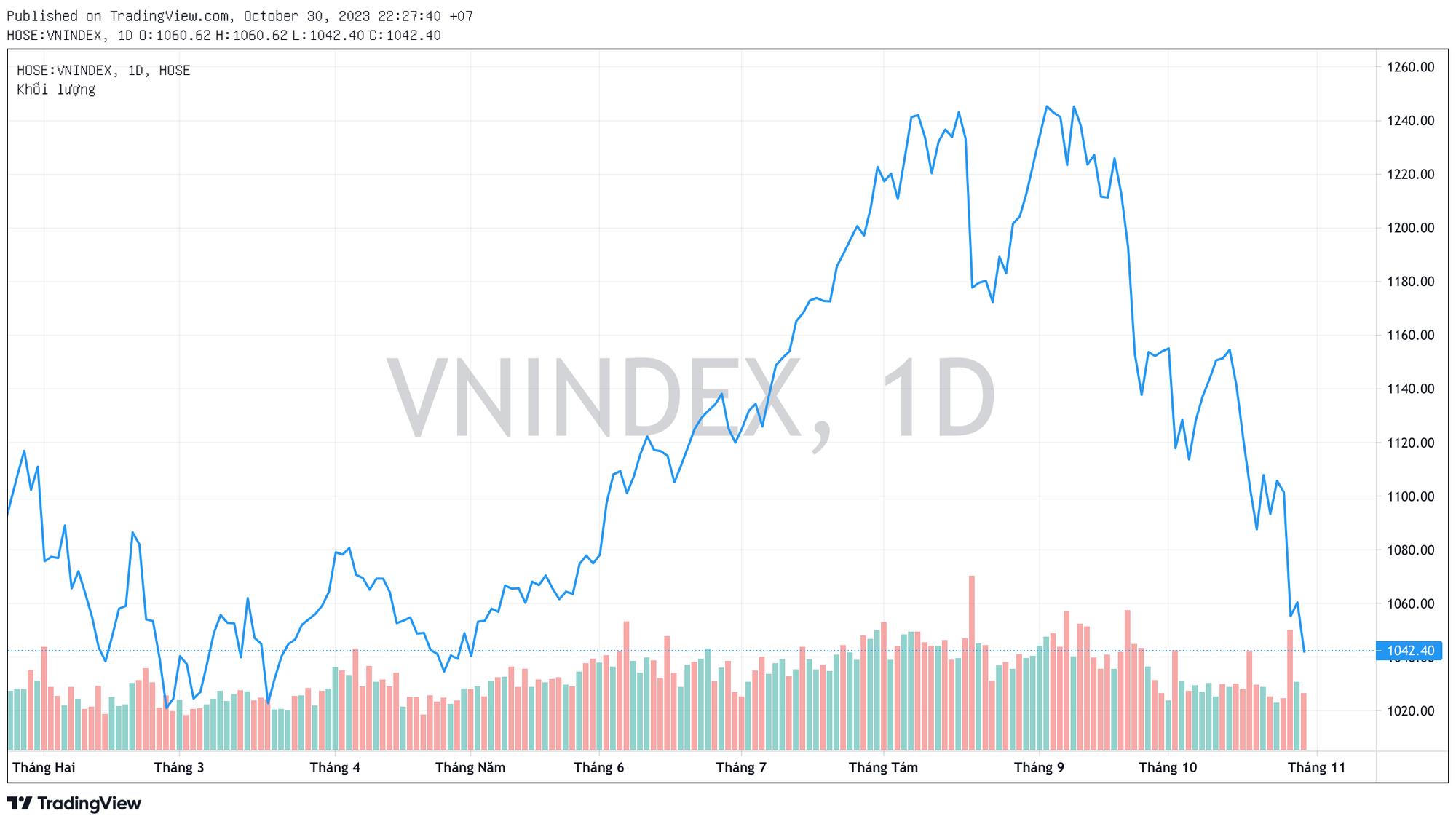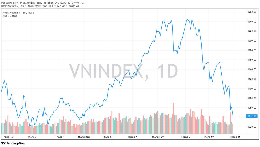 So với vùng đỉnh ngắn hạn thiết lập hồi tháng 9, thị trường đã mất gần 208 điểm, tương đương gần 17% giá trị. Nhịp chỉnh sâu chỉ trong hơn 1 tháng gần như thổi bay mọi thành quả tăng giá cả năm, VN-Index về mức thấp nhất kể từ tháng 5/2023. Vậy VN-Index có thể về đâu sau nhịp giảm sốc?