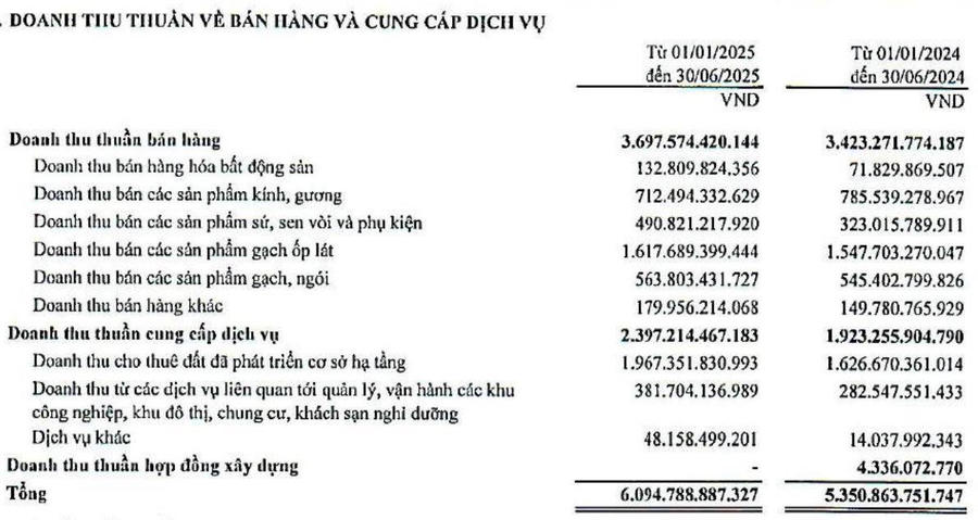 Lũy kế 6 tháng đầu năm, doanh thu thuần của VGC đạt gần 6.095 tỷ đồng, tăng 14% so với cùng kỳ. Trong đó, doanh thu thuần cho thuê đất đã phát triển cơ sở hạ tầng tăng trưởng 21% lên 1.967 tỷ đồng.
