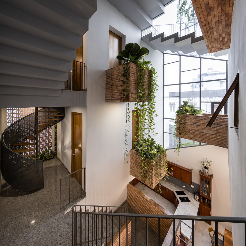 Ánh sáng từ giếng trời đi thẳng xuống các tầng bên dưới.