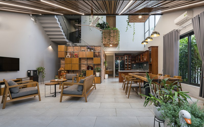 Khu vực sinh hoạt chung đặt hoàn toàn tại tầng trệt được sắp xếp hợp lý.