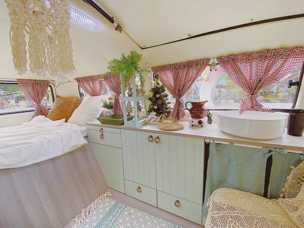 Tụi mình khóc ròng luôn. May sao sau đó tìm được một bên vô cùng thích ý tưởng của bên mình, đã giúp chúng mình làm được nội thất cơ bản cho chiếc xe đẹp nhất tỉ mỉ nhất có thể. Chi tiết trong xe thì đều do ba đứa mình tự làm, tự tay làm từ chiếc vải rèm, mua từng chiếc cốc, lọ hoa...”.