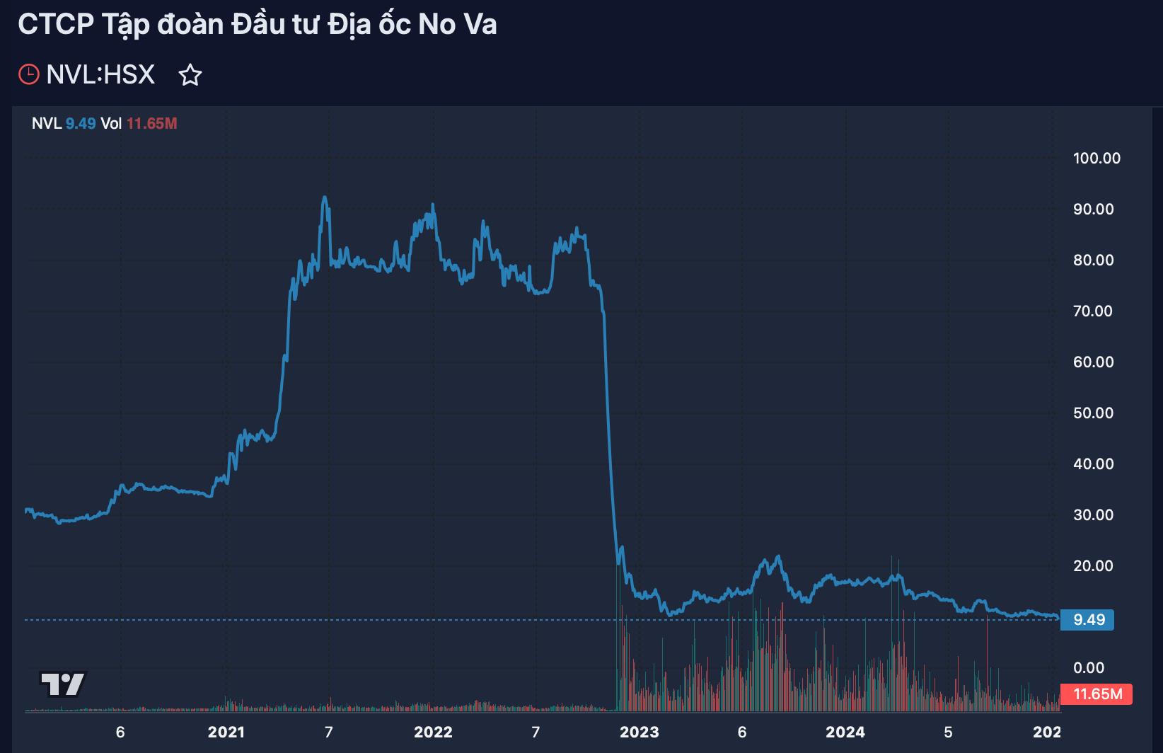 Trên sàn chứng khoán, sau giai đoạn đi ngang, cổ phiếu Novaland (mã NVL) bất ngờ rơi mạnh 2 phiên liên tiếp xuống mức 9.490 đồng/cp, mức thấp nhất lịch sử niêm yết. Vốn hóa thị trường cũng theo đó giảm còn chưa đến 19.000 tỷ đồng, tương đương khoảng 1/10 so với đỉnh hồi giữa năm 2021. Từ vị trí top 10 sàn chứng khoán, Novaland đã rớt khỏi danh sách tỷ USD vốn hóa.