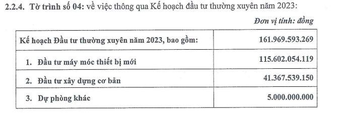 Đề cập thêm đến kế hoạch kinh doanh năm 2023, NTP cho biết sẽ đầu tư gần 162 tỷ đồng máy móc thiết bị mới, đầu tư xây dựng cơ bản và dự phòng cho năm 2023.