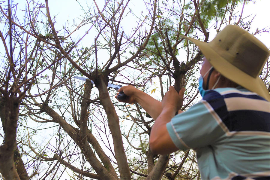 Ông Phúc cho biết những cây mai này được chăm sóc khá cẩn thận, tỉ mỉ: tưới nước mỗi ngày, bón phân và xịt thuốc 10 ngày một lần để trừ sâu nhện đỏ, nấm hồng...